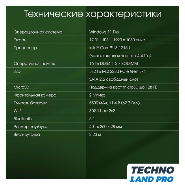 1920 x 1080 IPS, Intel Core i3 1215U, 16 ГБ, SSD 512 ГБ, встроенная, Windows 11 Pro, цвет крышки серый