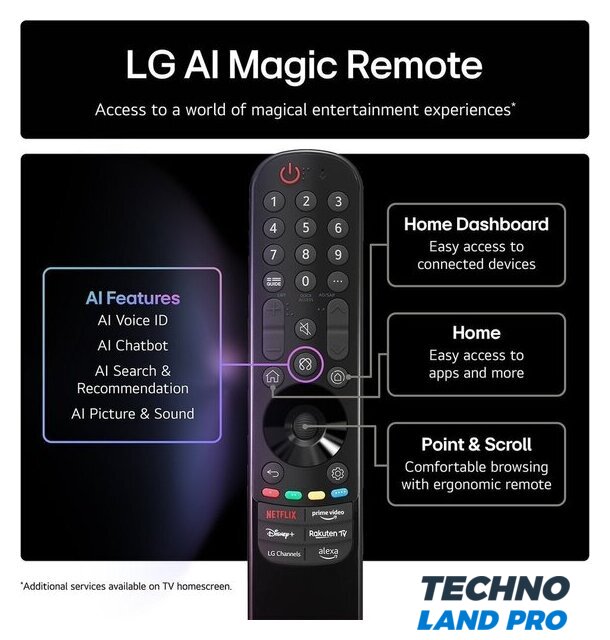 | Оригинальные функции | AI Voice ID, AI Chatbot, AI Concierge, Multi View, Home Hub, WOW Orchestra, AI Sound Pro, поддержка Matter, hands-free голосовое управление |