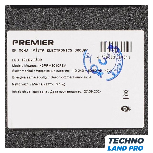 | Диагональ экрана | 43" |