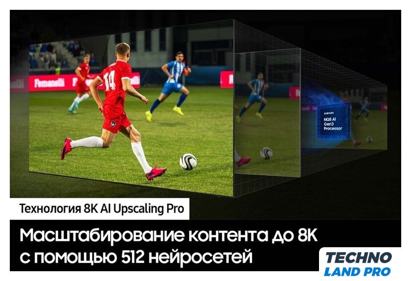 Оригинальные функции | ✅ Q-SymphonyОдновременное звучание динамиков ТВ и саундбараГармоничный звук от телевизора и саундбара заполнит каждый уголок пространства. Благодаря уникальной функции Q-Symphony, звук от телевизора и саундбара синхронизируется, позволяя наслаждаться объемным звуком без отключения динамиков ТВ.✅ Adaptive Sound ProАутентичный звук, отвечающий замыслу режиссера, оптимизированный с помощью AIФункция Adaptive Sound Pro оптимизирует звук с учетом особенностей как вашей комнаты, так и аудиоконтента. Оцените улучшенную четкость голоса и яркое, но сбалансированное звучание, как и задумывали создатели контента, благодаря AI обработке звука.✅ Auto HDR RemasteringИзображение в HDR качестве даже для SDR контентаТеперь вы можете смотреть SDR-контент со стандартным динамическим диапазоном в HDR-качестве. Алгоритмы глубокого обучения используются для ремастеринга вашего контента путем преобразования SDR-контента в контент HDR-качество с более яркими бликами, более яркими цветами и более четкими деталями.✅ AI Motion EnhancerПовышение плавности движения, улучшение четкости объектов и текста с помощью AIНейронный процессор NQ8 AI 2-го поколения использует искусственный интеллект для повышения резкости и сглаживания текста. Это выводит просмотр спортивных трансляций в прямом эфире на новый, более высокий уровень качества. |