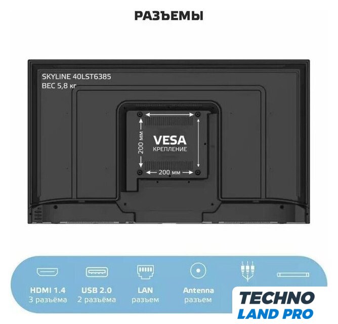 | Крепление VESA | 200x200 |