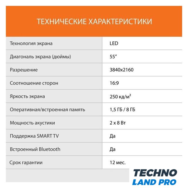 | Диагональ экрана | 55" |