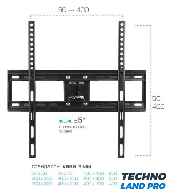 Совместимость с креплением VESA | 50x50, 75x75, 100x100, 200x100, 200x200, 300x200, 300x300, 400x200, 400x300, 400x400 |