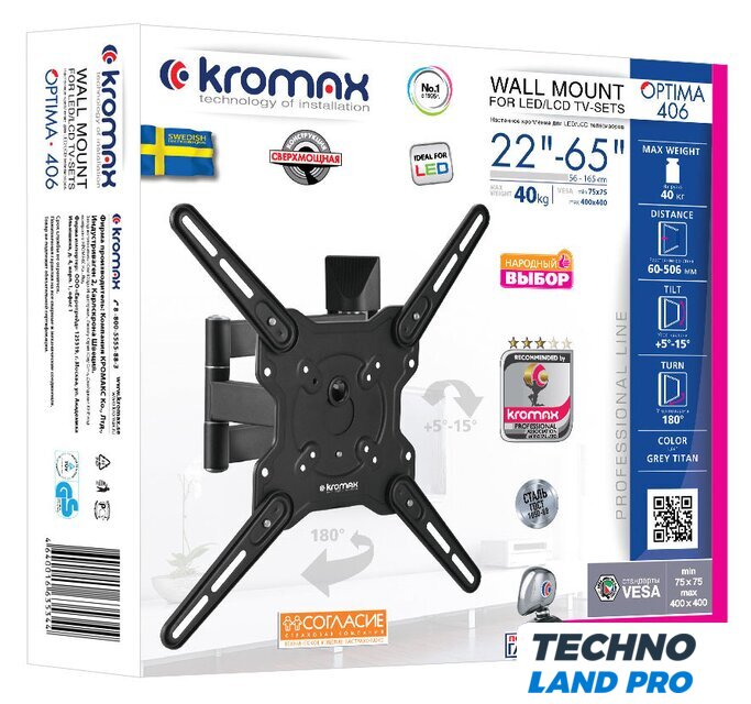 Совместим с телевизорами | 22 — 65 " |