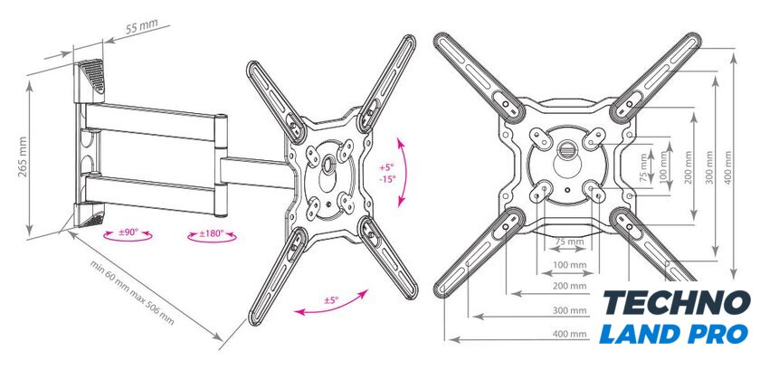 Расстояние от стены (потолка) | 60 — 506 мм |